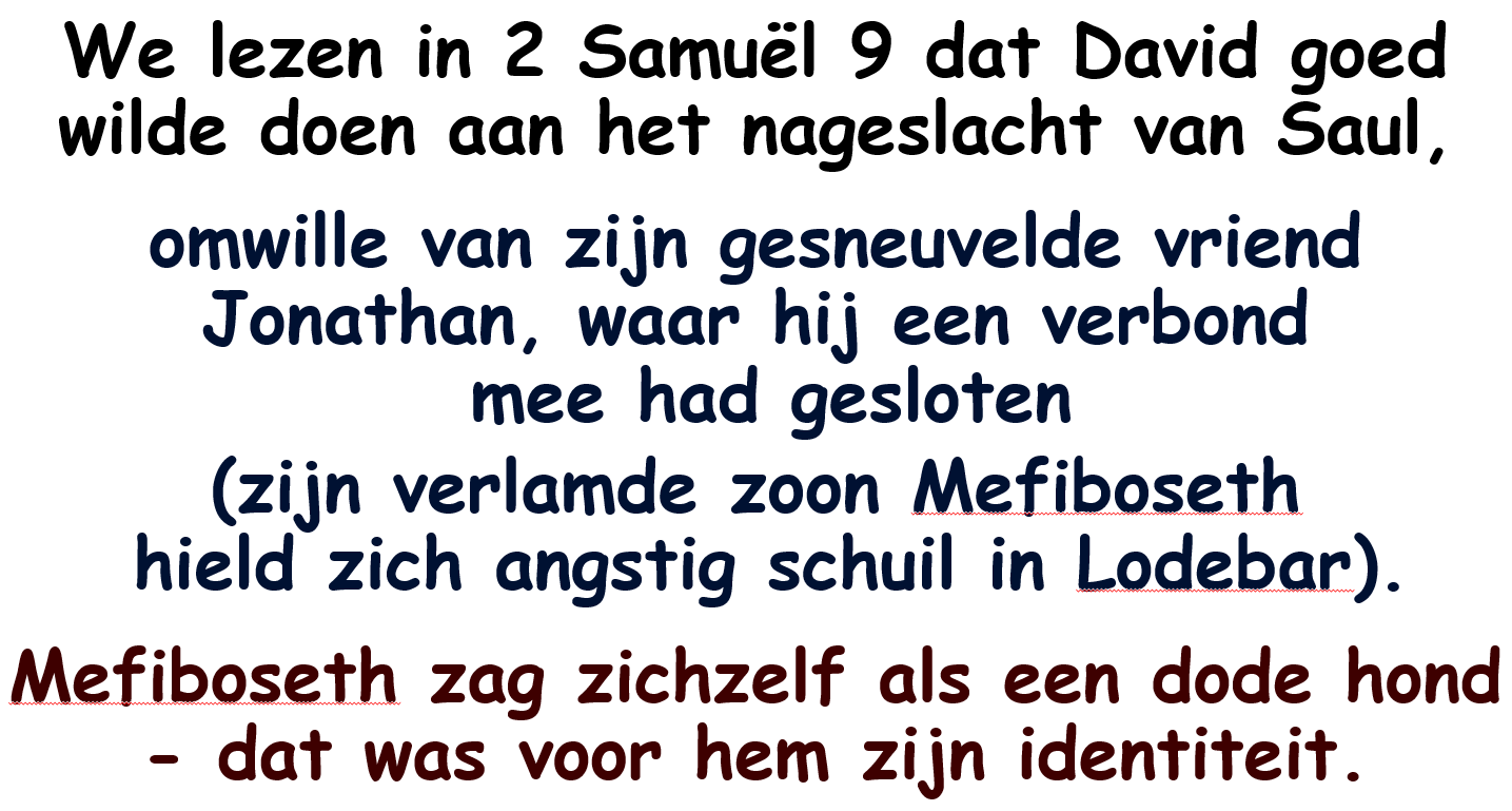 Je kunt hier aanklikken op de PowerPoint over David en Mefiboseth, Waarbij je ook ziet dat de liefde van God de angst uitdrijft en uitwerpt: