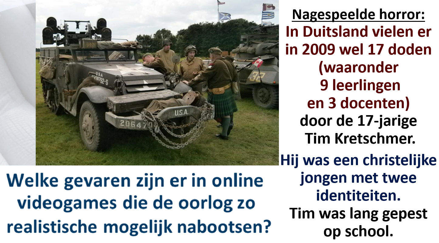 Op zeer jonge leeftijd spelen kinderen tegenwoordig al gewelddadige games. De gevolgen kunnen catastrofaal zijn. Op donderdag 22 augustus 2013 heeft een 8-jarig jongetje in de Amerikaanse plaats Slaughter zijn 90-jarige oma doodgeschoten na het spelen van een gewelddadig videospelletje. Ze werd dood aangetroffen in haar stacaravan.